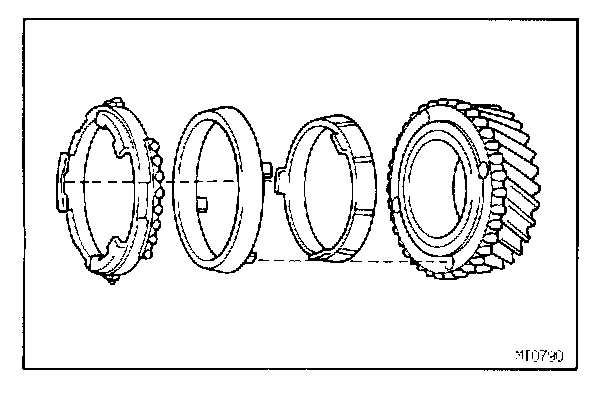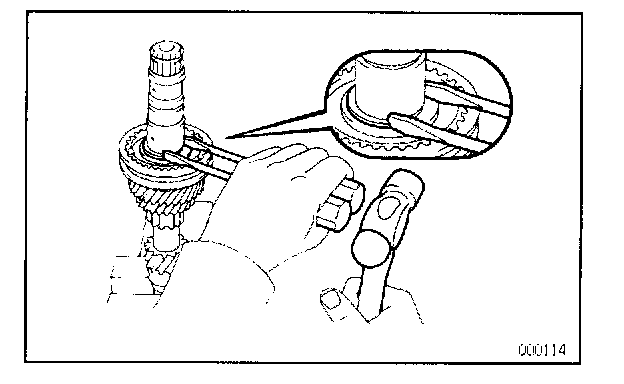 Turn the synchronizer ring in one direction while pushing it to the gear cone and check that the ring is locked.