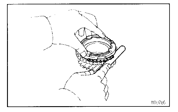c. Measure the clearance between the synchronizer ring back and gear spline end.