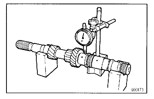 Using dial indicator, measure the oil clearance between the gear and shaft.
