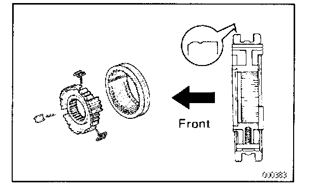 HINT: Direct identification groove of the hub sleeve to front of the transmission.