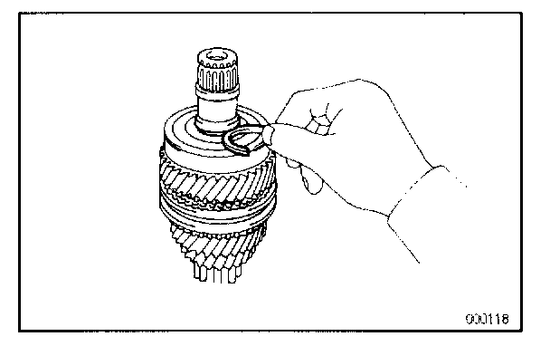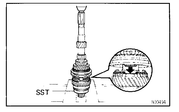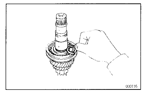 5. INSTALL SPACER, SYNCHRONIZER RING, NEEDLE ROLLER BEARINGS, FOURTH GEAR AND RADIAL BALL BEARING