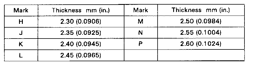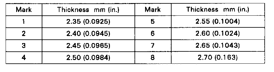 Standard clearance: 0.10 - 0.45 mm (0.0039 - 0.0177 in.)