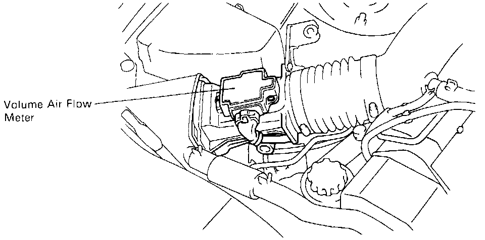 The volume air flow meter is mounted to the air cleaner assembly.