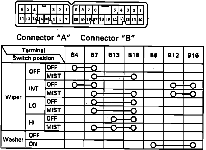 Fig. 20 Wiper & Washer Switch Continuity Test Chart: