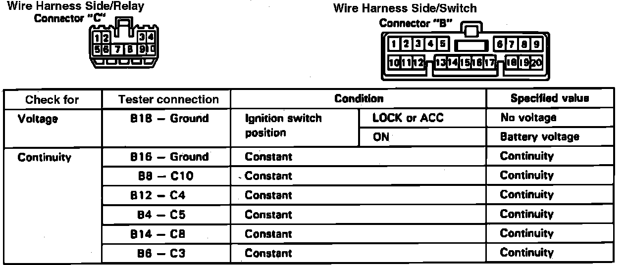 2. Inspect switch resistance by following Fig. 21. If resistance is not as specified, replace switch.