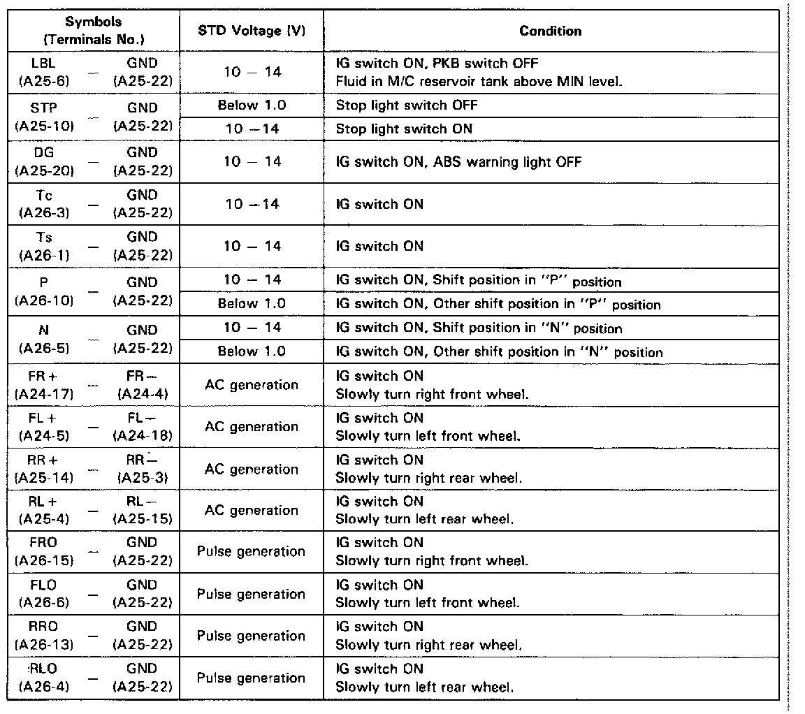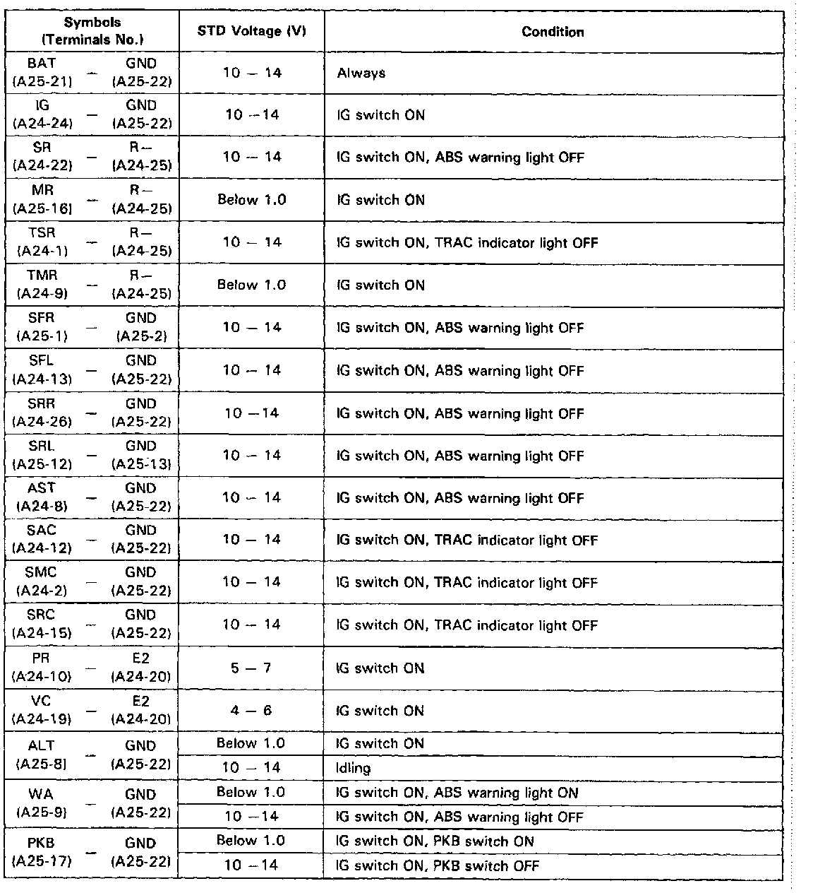 Fig. 43 ABS & TRAC ECU Terminal Values (Part 2 Of 2):