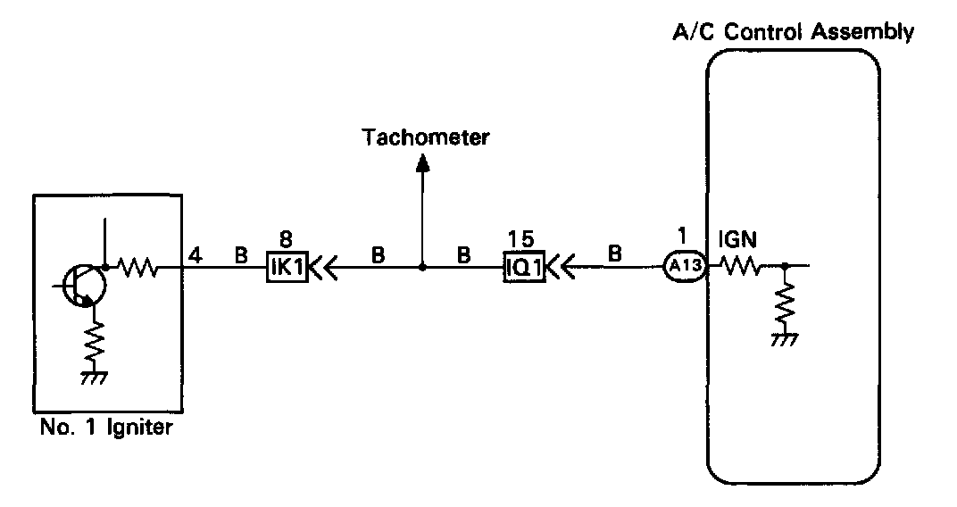 The air conditioning control assembly monitors the engine speed through signals sent from the igniter.