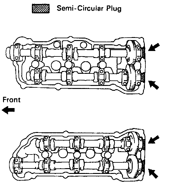 (c) Install the 4 semi - circular plugs to the cylinder heads.