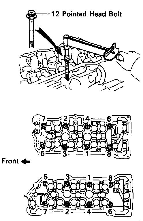 B. Install 12 pointed head cylinder head bolts