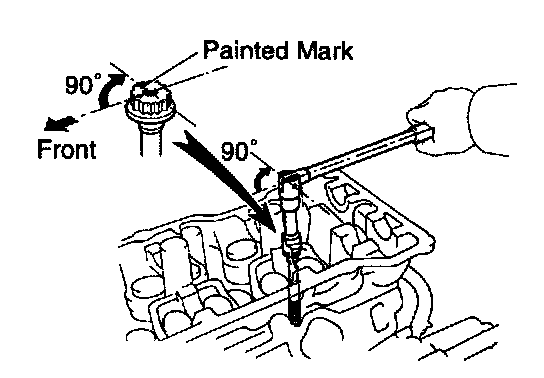 (d) Mark the front of the cylinder head bolt head with paint.