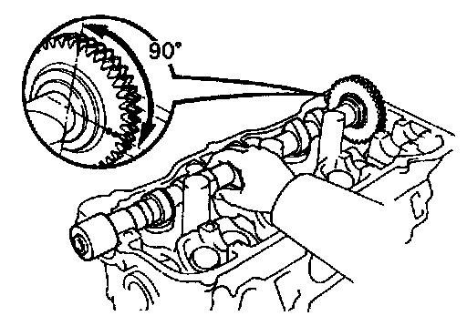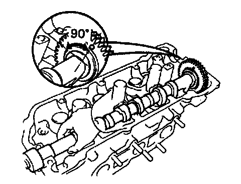 (b) Place the exhaust camshaft at 90° angle of timing mark (2 dot marks) on the cylinder head.