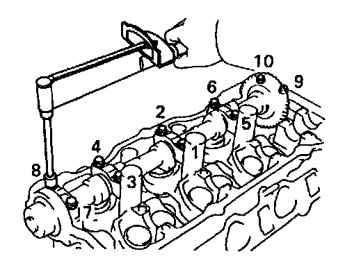 (e) Retighten the cylinder head bolts by 90° in the numerical order shown.