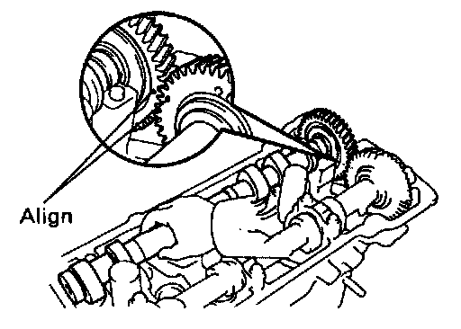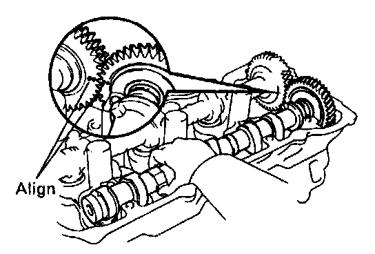(b) Align the timing marks (2 dot marks) of the camshaft drive and driven gears.