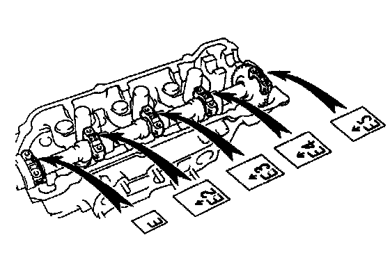 NOTE: Since the thrust clearance of the camshaft is small, the camshaft must be held level while it is being installed. If the camshaft is not level, the portion of the cylinder head receiving the shaft thrust may crack or be damaged. causing the camshaft to seize or break. To avoid this, the following steps should be carried out.