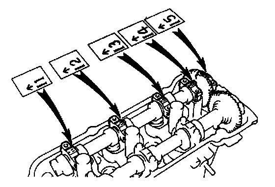 (g) Install the 5 bearing caps in their proper locations.