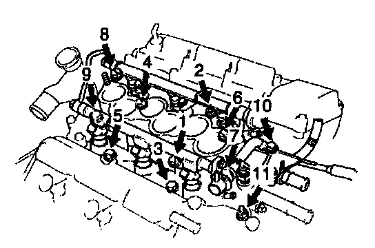 (3) Vacuum hose to cylinder head rear plate