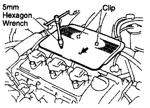 Using a 5 mm hexagon wrench, install the V-bank cover with the 2 nuts.