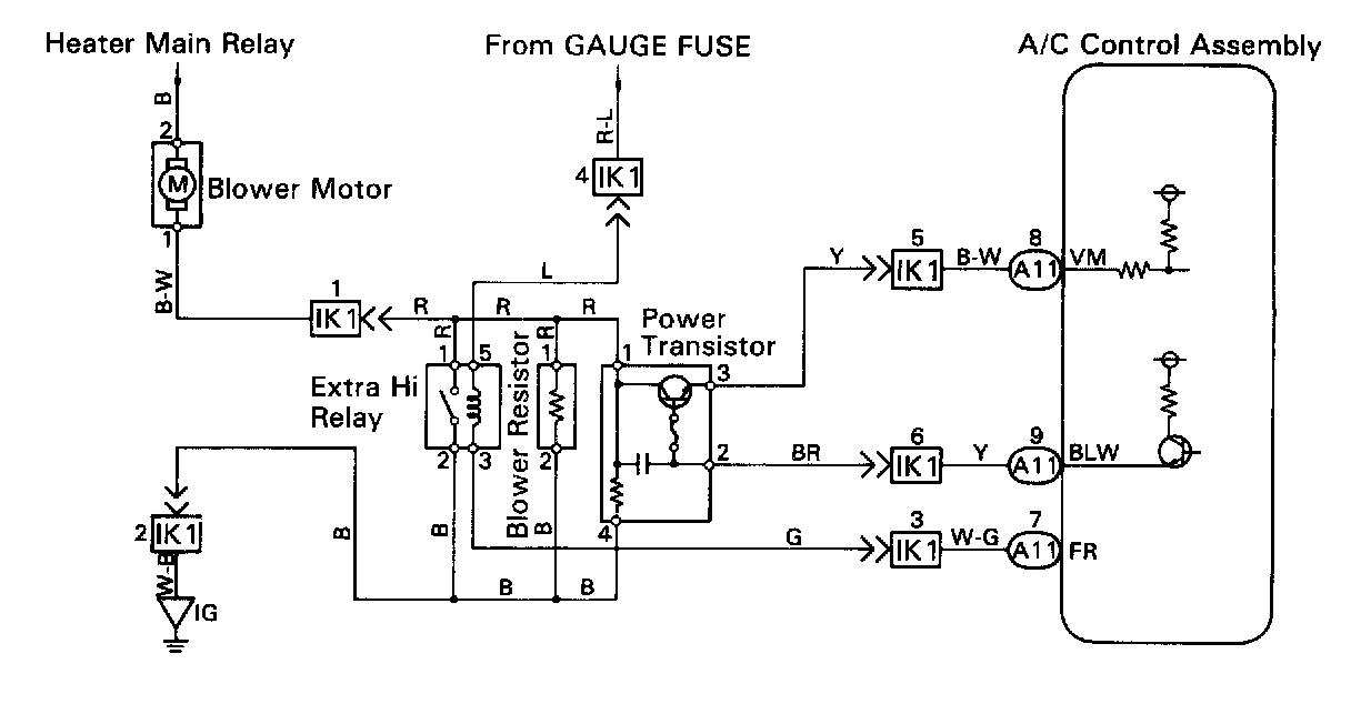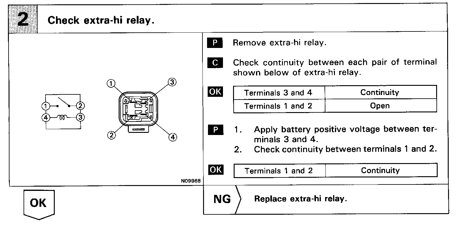 The extra-Hi relay is switched on by signals from the air conditioning