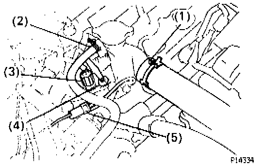 - Remove the 2 bolts, 2 nuts, 2 plate washers and water outlet.