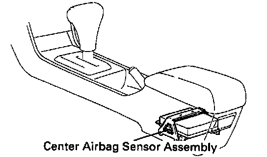 The center airbag sensor assembly is mounted on the floor inside the console box. The center airbag sensor assembly consists of a center airbag sensor, safing sensors, ignition control and drive circuit, diagnosis circuit, etc. It receives signals from the airbag sensors, judges whether the SRS must be activated or not and diagnosis system malfunctions.
