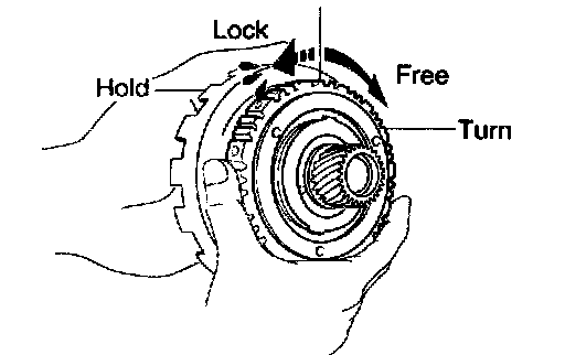 Hold the sun gear and turn the hub. The hub should turn freely clockwise and should lock counterclockwise.