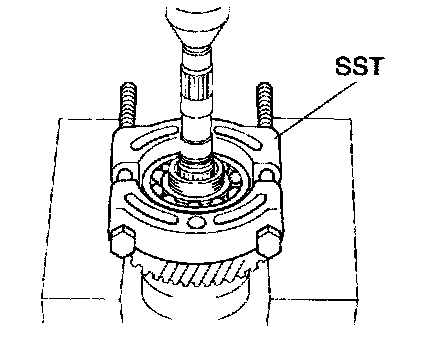 Using SST, press out the bearing from the shaft.