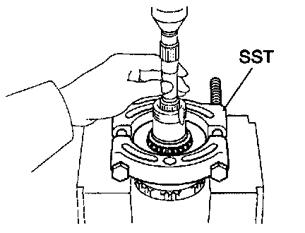Using SST, press in the bearing onto the shaft.