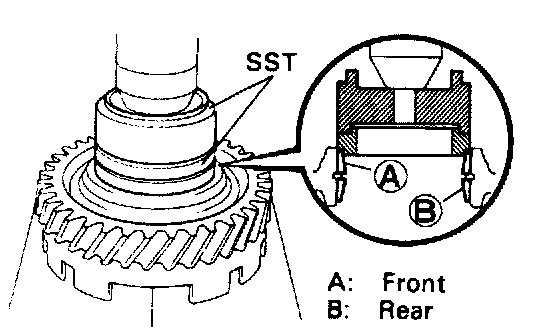 Using SST, press in the 2 outer races to both sides of the gear.