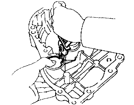Install the 2 oil seal rings to the overdrive case groove, then snug them down by squeezing their ends together.