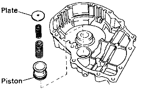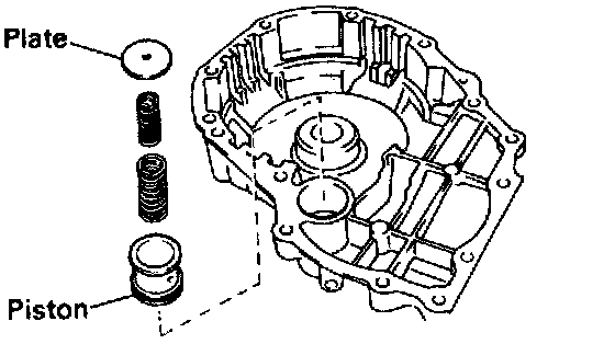 c. Install the accumulator piston, 2 springs and retaining plate.
