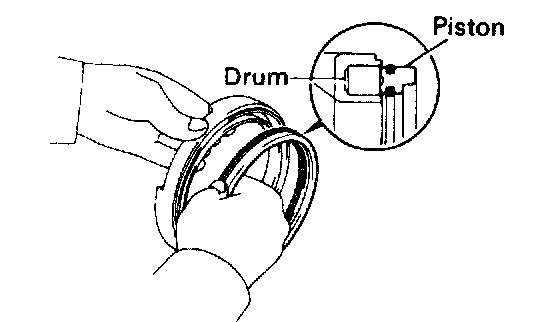 b. Press the piston into the drum, being careful not to damage the O-rings.