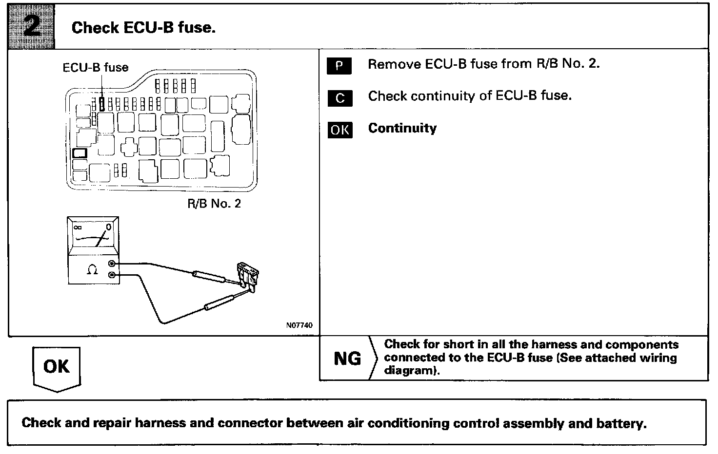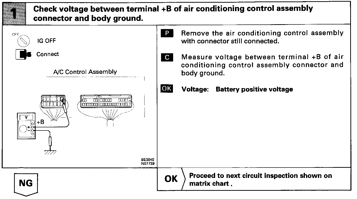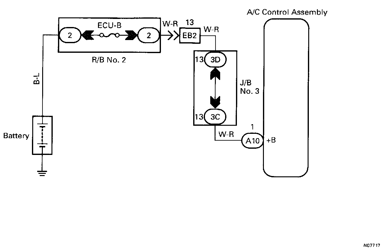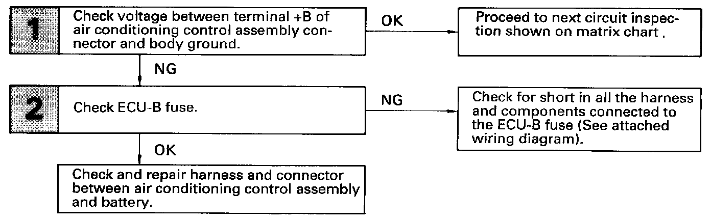 This is the backup power source for the air conditioning control assembly. Power is supplied even when the ignition switch is off and is used for diagnostic trouble code memory, etc.