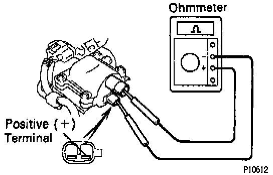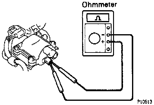 4. Inspect Secondary Coil resistance. Using an ohmmeter, measure the resistance between the positive (+) and high-tension terminals.