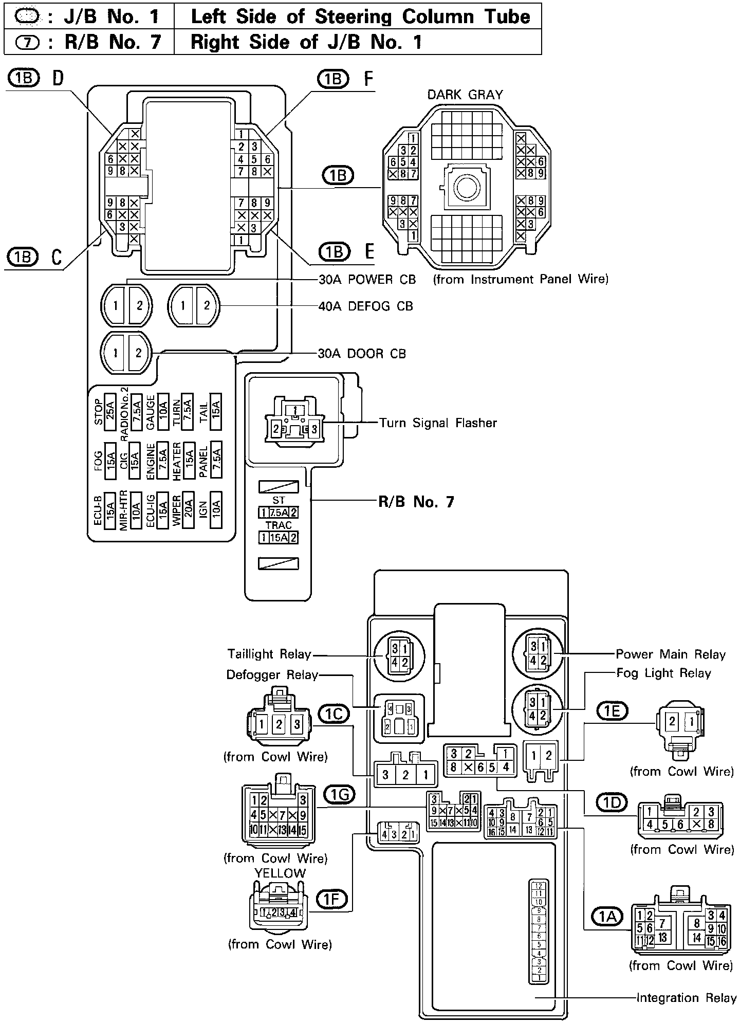 Locations-J/B No.1 Left Side Of Steering Column Tube, R/B No.7 Right Side Of J/B No.1 (Fig 20):