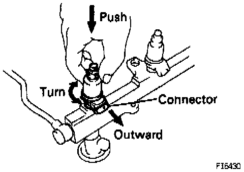- While turning the injector clockwise and counterclockwise, push it to the delivery pipe. Install the 8 injectors.
