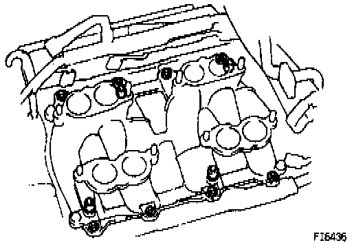 - Install the air intake chamber and following parts with the 4 bolts and 8 nuts: