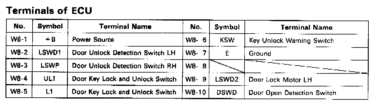 Keyless Entry ECU Pinout: