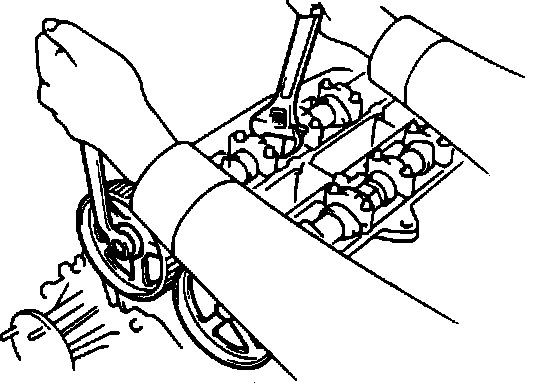 4. Disconnect timing belt from camshaft pulleys as described under Timing Belt.