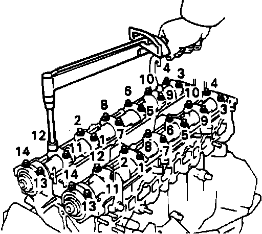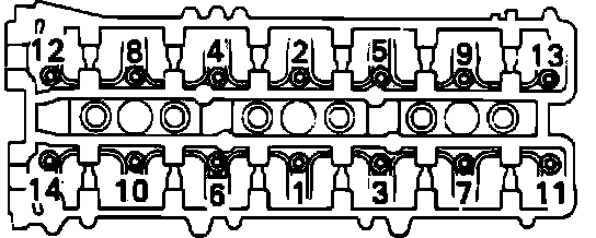 Fig. 14 Camshaft Bearing Cap Bolt Loosening Sequence: