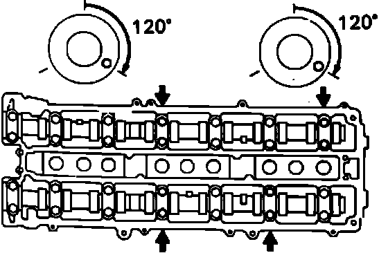 Fig. 22 Retorquing Camshaft Bearing Caps (third Step):