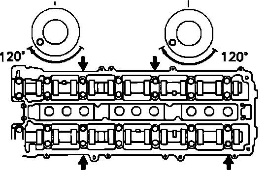 Fig. 21 Retorquing Camshaft Bearing Caps (second Step):
