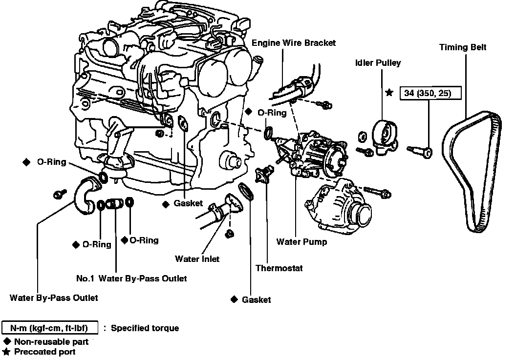 8. Disconnect No. 2 water by-pass pipe from water pump.