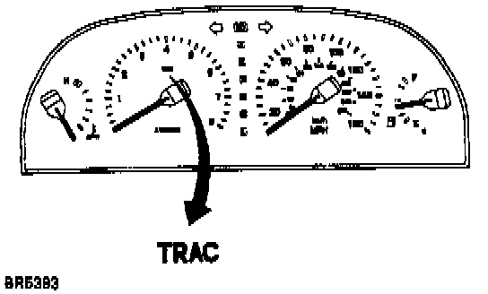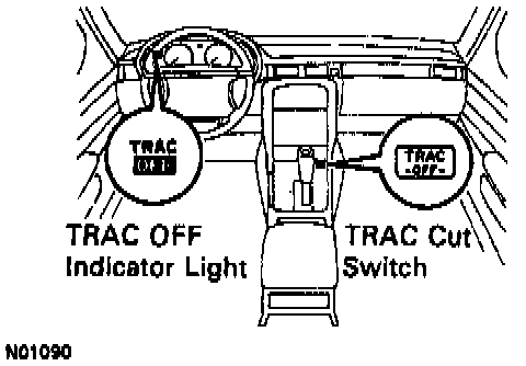 2. Check that the TRAC OFF indicator light comes on when the TRAC system is turned off by the TRAC cut switch. The TRAC indicator light should always operate right after the engine is restarted.