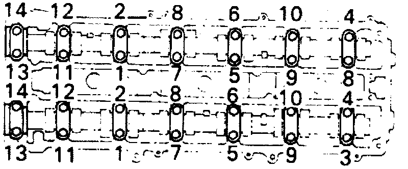 Fig. 27 Camshaft Bearing Cap Bolt Tightening Sequence: