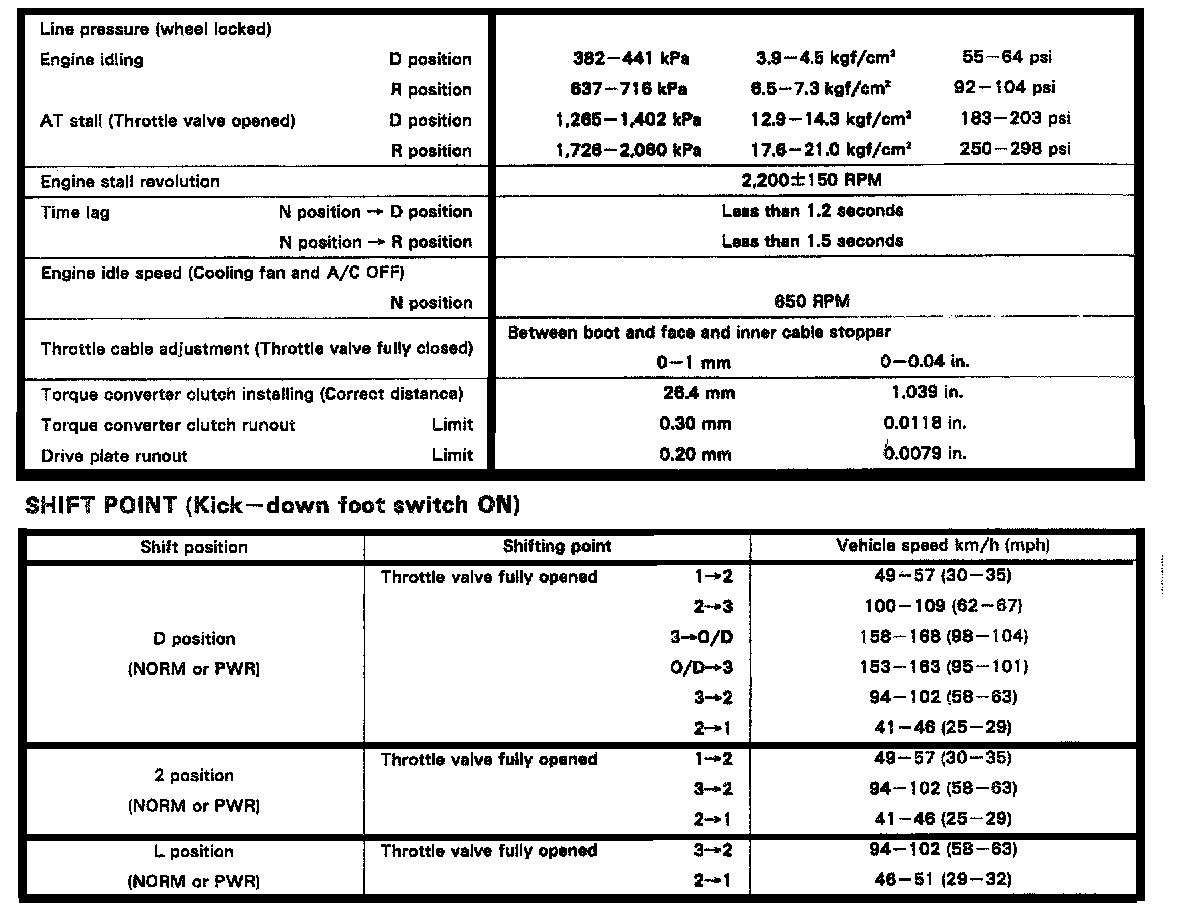 A340E 4-spd A/T, Line Pressure / Shift Points: