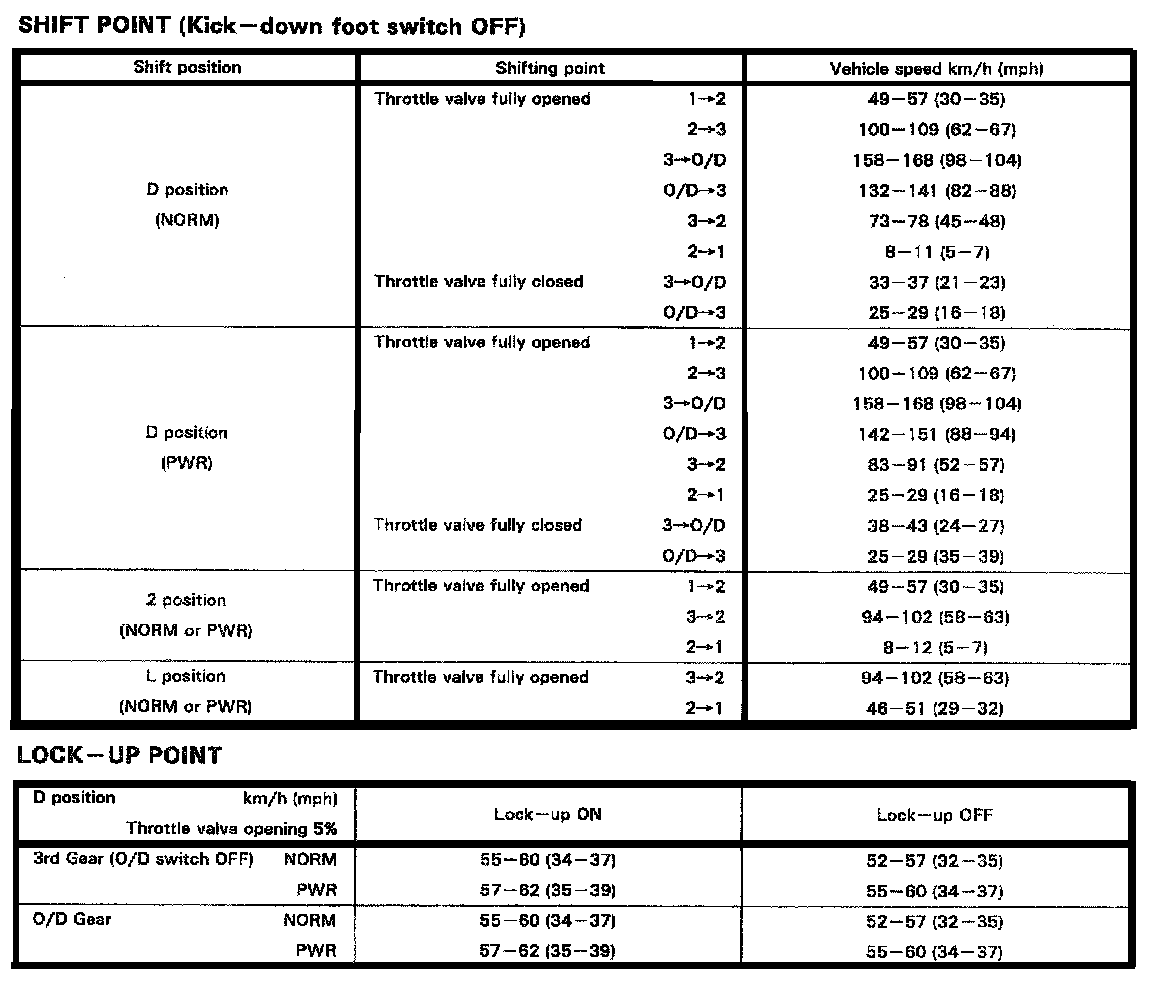 A340E 4-spd A/T, Shift Point / Lock-Up Point: