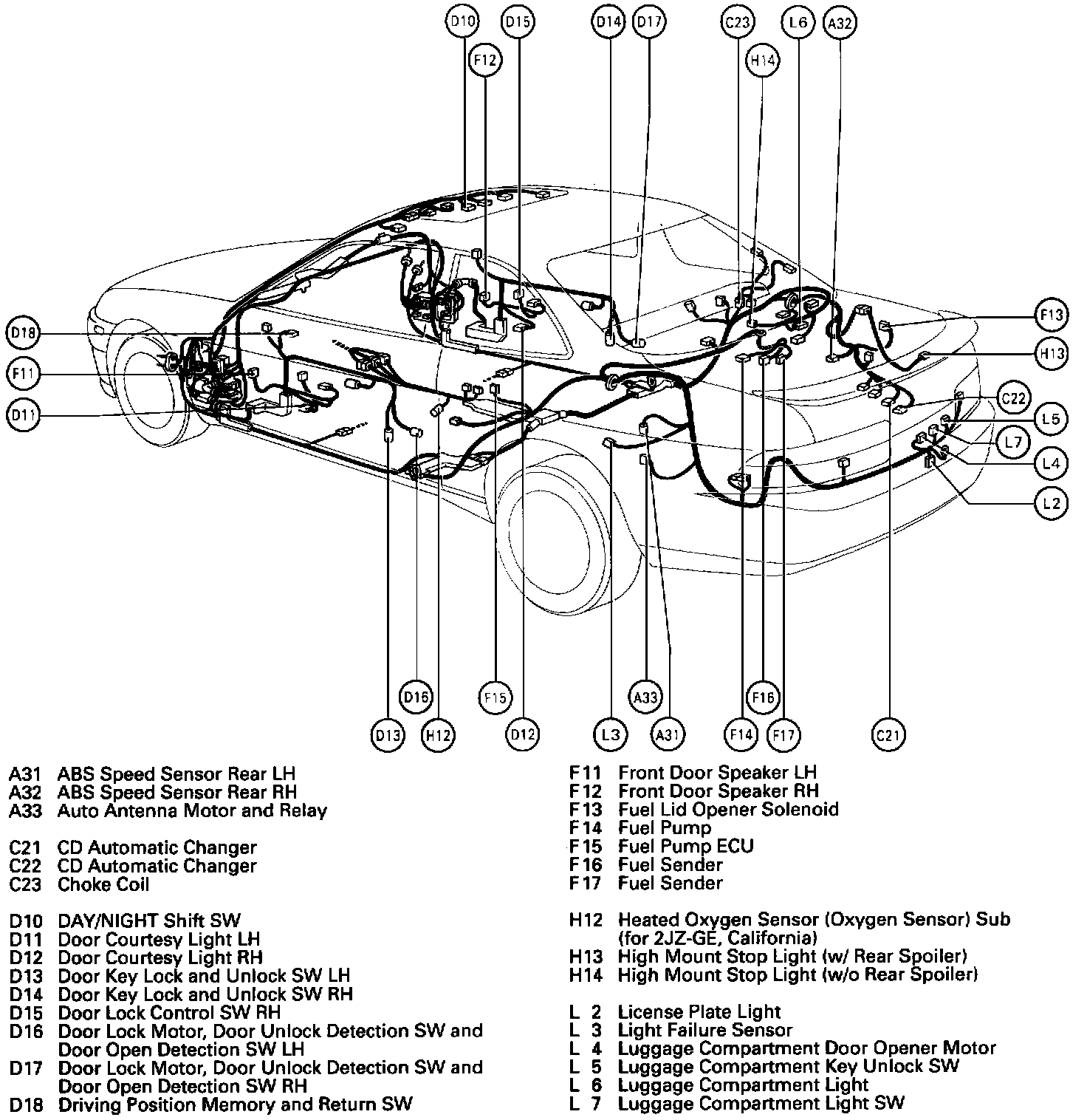 D17 Door Lock Motor, Door Unlock Detection 5W and L Door Open Detection 5W RH L