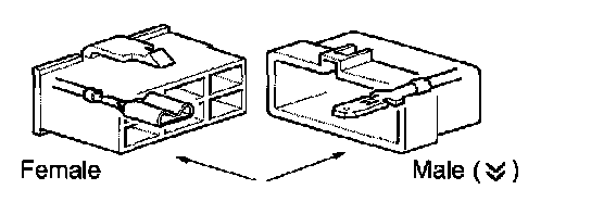 G: Indicates the wiring harness and wiring harness connector. The wiring harness with male terminal is shown with arrows (V V) Outside numerals are pin numbers.