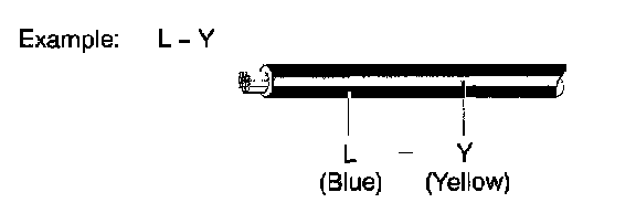 The first letter indicates the basic wire color and the second letter indicates the color of the stripe.