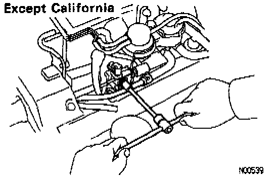 4. Except California: Remove the bolt holding the water bypass pipe to the vacuum switching valve.